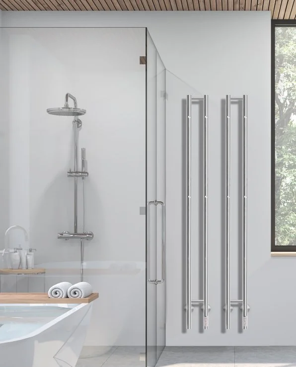 Med et slankt, minimalistisk design og op til fire kroge til våde håndklæder, er denne håndklædetørreren både praktisk og æstetisk. Den kan installeres med skjult kabel direkte i væggen eller med synligt kabel og stikprop til en stikkontakt. Modellen tilbyder forskellige varmestyrker og tidsindstillinger via et betjeningspanel på fronten.