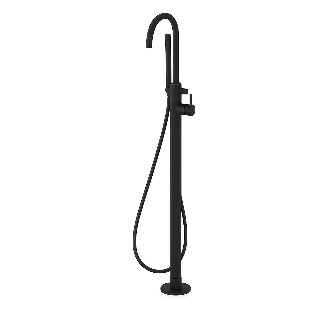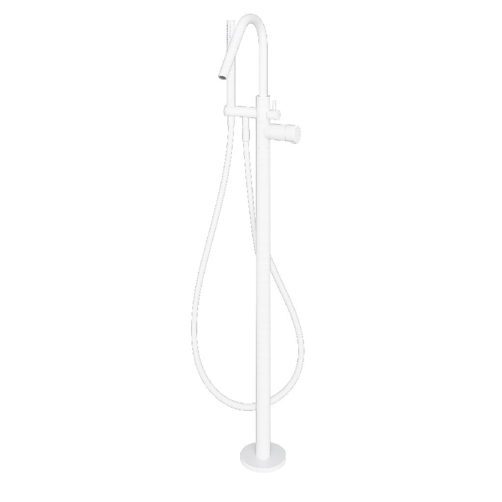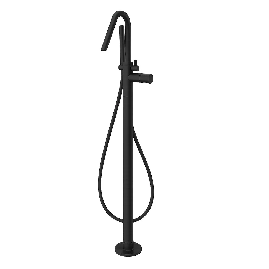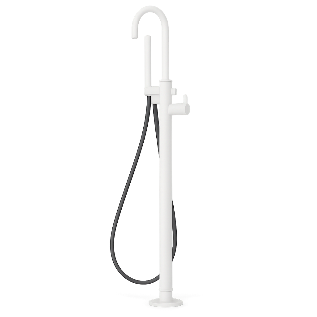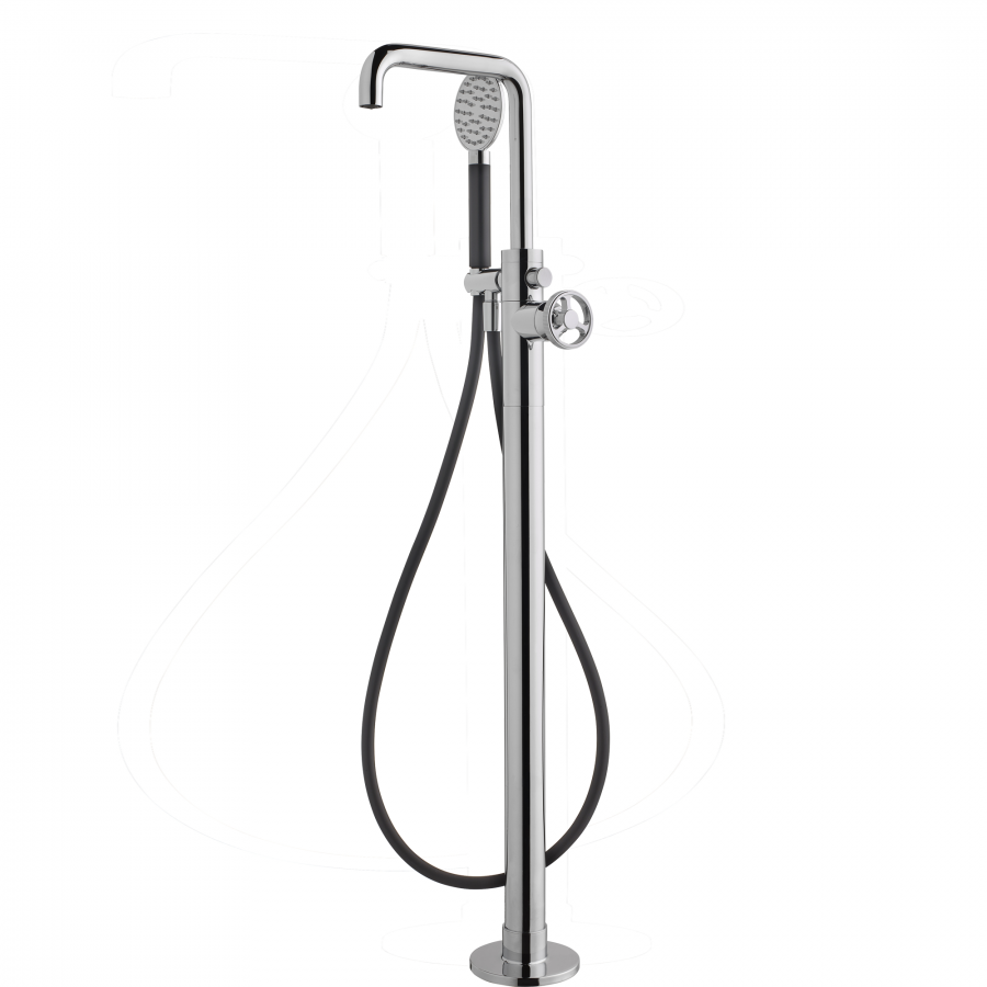 Fritstående badekarsøjle med fleksibel Silitech-slange, håndbruser i messing og Techno-Box.